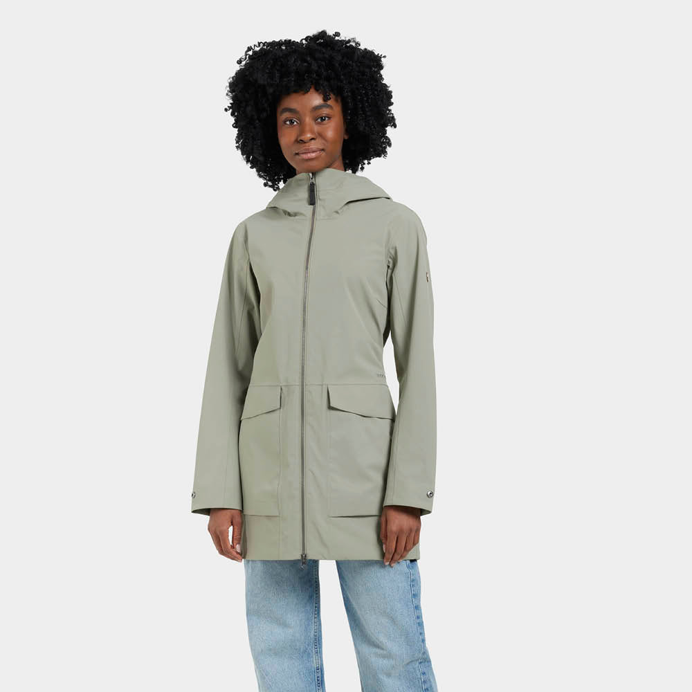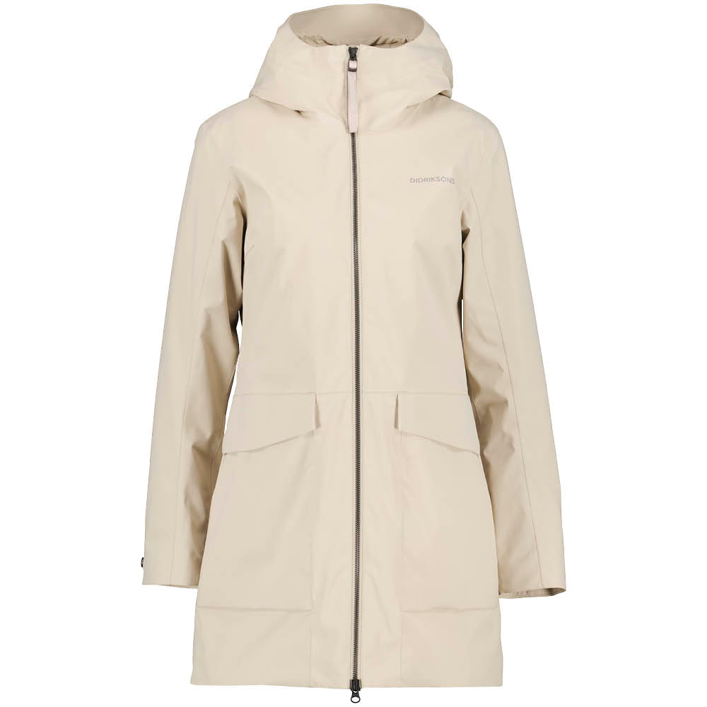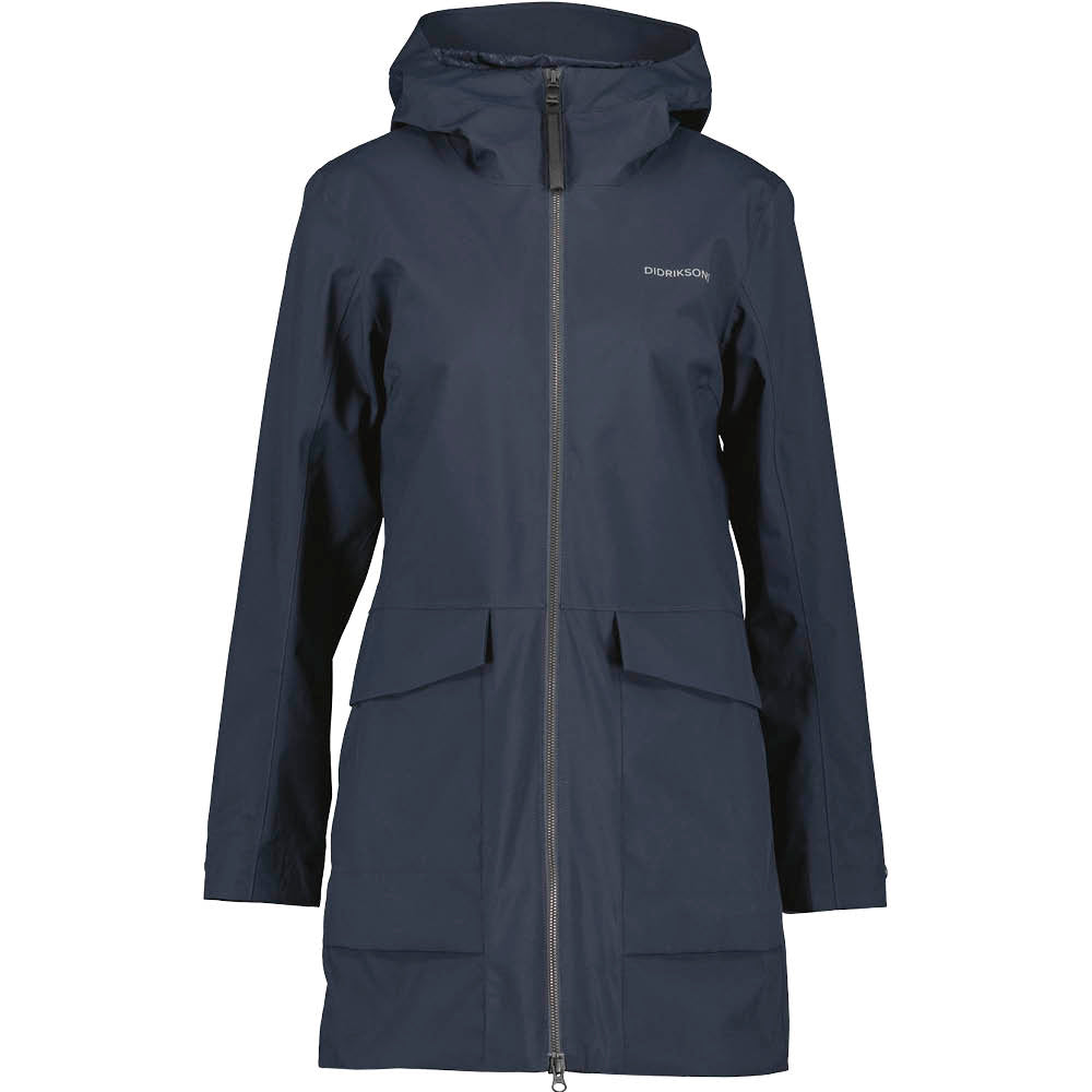 Den klassiske, simple og feminine Folka parka jakke fra Didriksons til kvinder er med sit enkle design og høje vandsøjletryk perfekt til det skiftende vejr i overgangsperioden. Jakken er både vindtæt, vandtæt og åndbar og er dermed helt ideel til udendørs aktivitet i ustadigt vejr. Den klassiske regnjakke har praktiske detaljer, såsom inder- og yderlommer, en justerbar hætte og en bælte-detalje på ryggen, der skaber en feminin pasform.