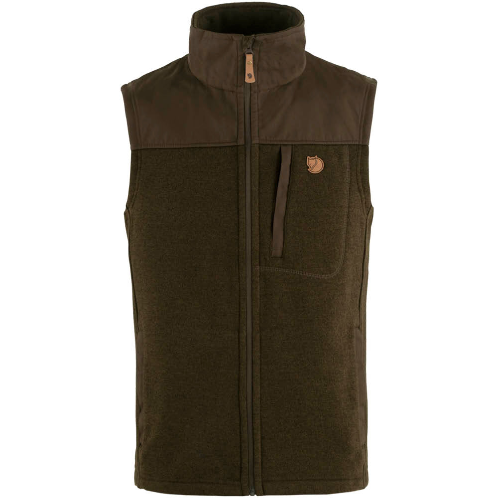 Denne vest er lavet af varm og tyk fleece med en strikket yderside og blød, børstet inderside, der giver maksimal komfort. Den er forstærket med slidstærkt G-1000®-materiale over skuldrene, hvilket gør den ekstra modstandsdygtig, når du bærer rygsæk – perfekt til både vandreture, skovture og hverdagsbrug.