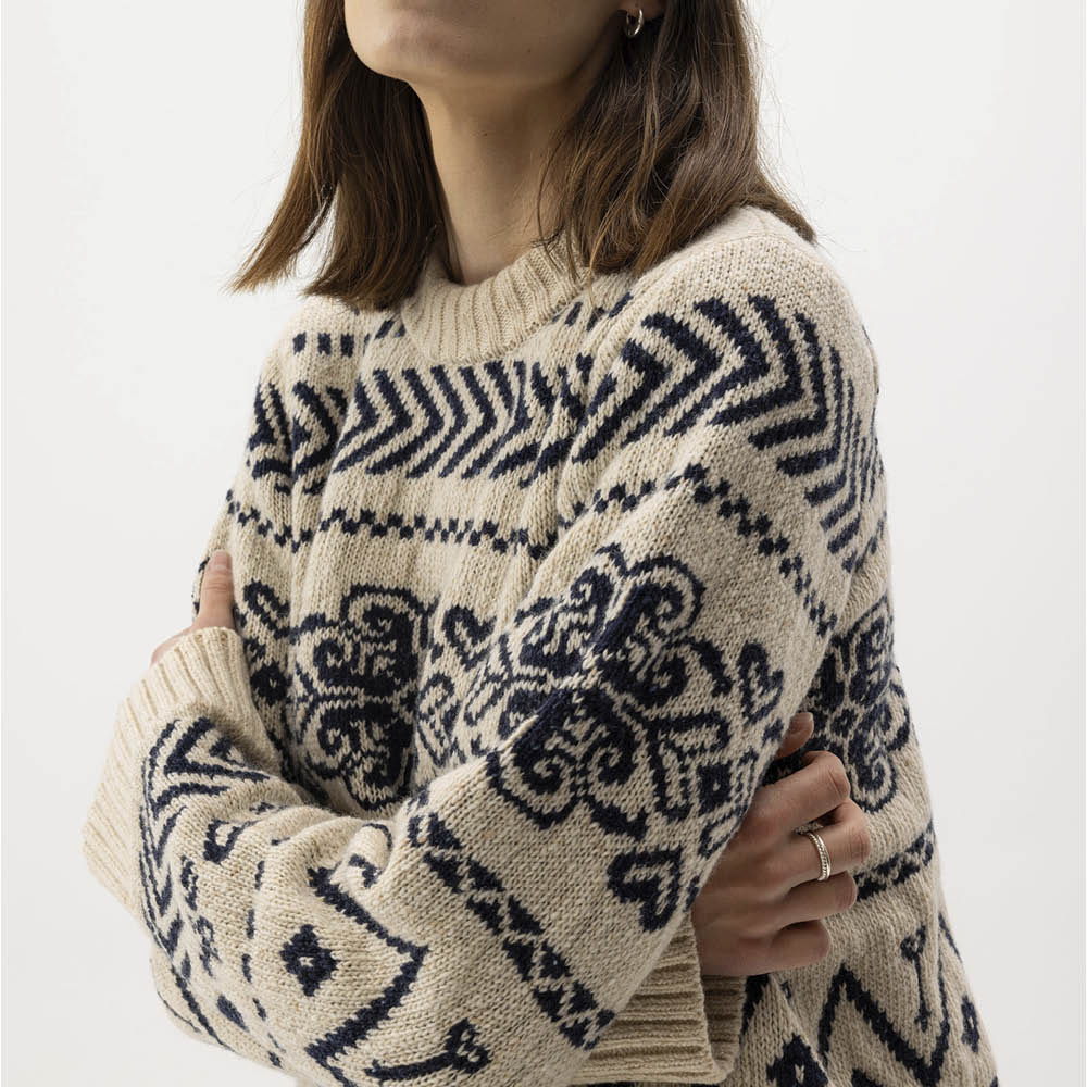 Teknik: jacquard-strik; åndbar; naturlig isolering