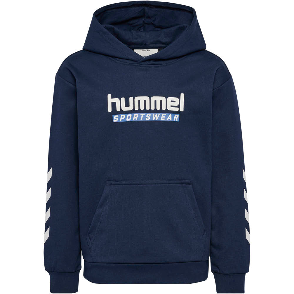På fronten finder du det ikoniske Hummel-logo, mens de klassiske vinkler på ærmerne understreger det sporty udtryk. Den rummelige hætte giver ekstra varme, og den regular pasform gør den let at bruge i hverdagen.