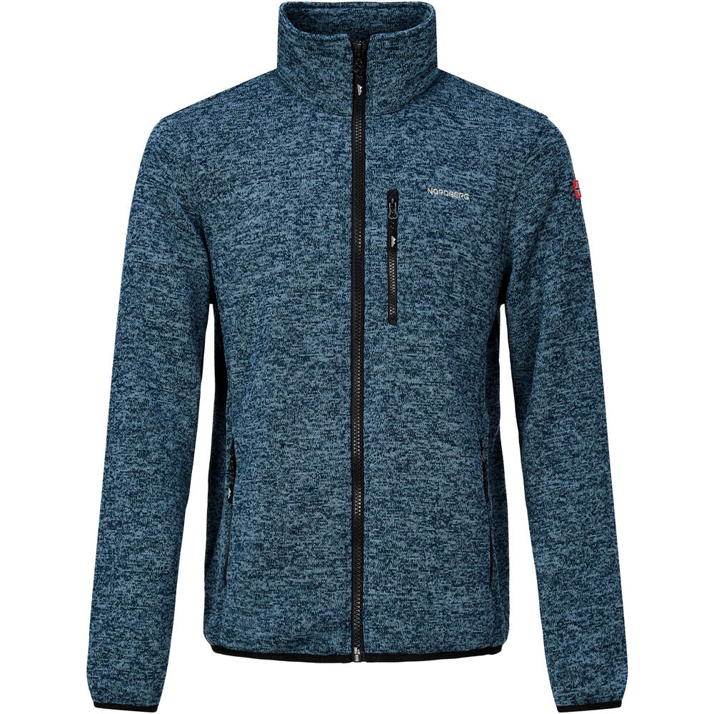 Nordberg strikfleece til herre. Strikfleecen er i flot melert metervarer og med ensfarvede kraftig lynlås. Lækker, let og åndbar gennemlynet fleece, med 3 lommer, som også er med lynlås. Den opkredsede inderside gør fleecen lækker blød. Afsluttet flot med kantbånd forneden og på ærmer. Der er et broderet logo på brystet og det norske flag på ærmet 100% Polyester Kan vaskes ved 30°C.
