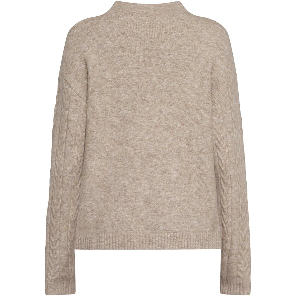 Detaljer: høj hals, ribkanter ved hals/ærmer/bund, kabelstruktur, regular fit, god længde
