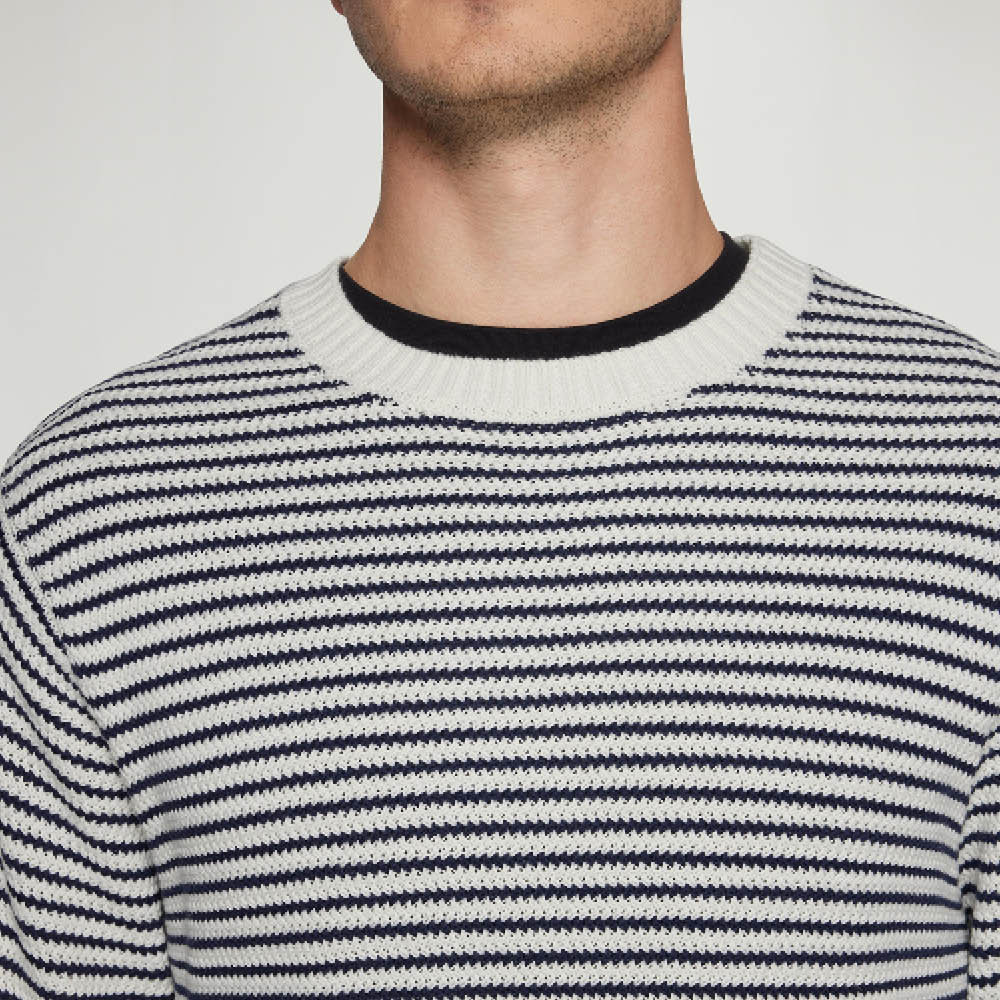 Detaljer: rund hals, ribkanter ved ærmer og bund
